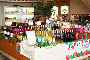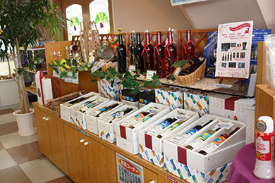 工場隣接ワイナリーショップ1F直売コーナーでは新鮮なワインのほか、おみやげものや、地元名産品なども多数取り揃えております。 ※ワイナリーで作られたワインやジュースの試飲コーナーもご用意しています。