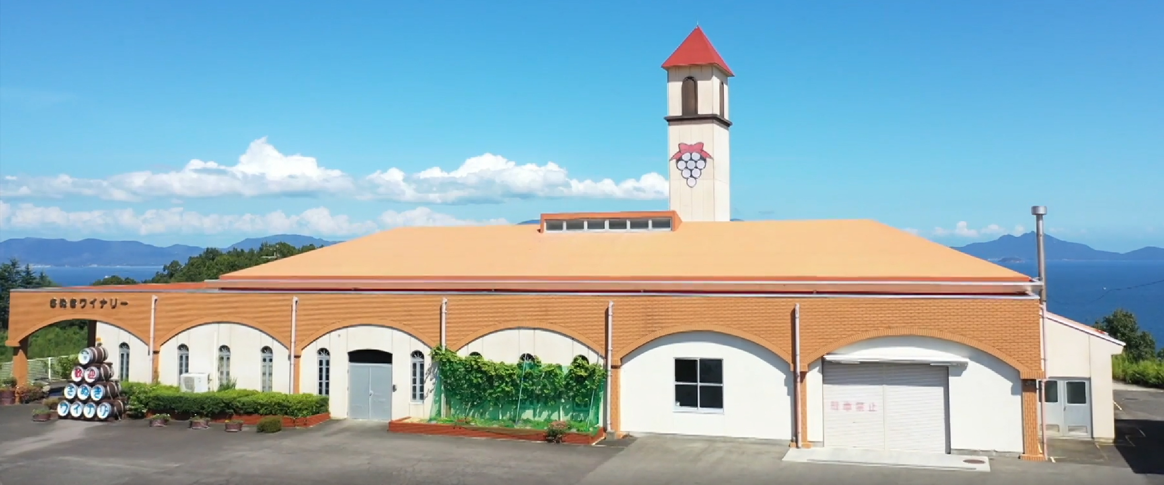瀬戸の海が太陽と共に目覚める爽やかな日の海原はきらきら輝く波の宝石。点在する島々も青緑に染まり夕暮れ時は黄金色のドラマを演じてくれる。遠くで行き交う船もV字型の波模様を残し、その穏やかさは時間さえ止めてしまう。自然がくれた感動パノラマスクリーン。こんな丘の上のワイナリーで育んだ味覚をお届けします。